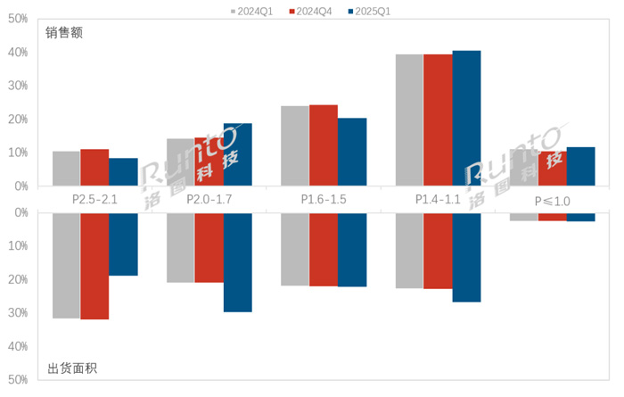 2025Q1 中国大陆小间距LED显示屏市场分间距段结构及变化